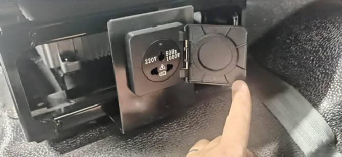 考虑到吃、穿、住、行都与车有关,整车标配1KW功率逆变器,预留了220V电源插头,可满足长期户外生活用电需求,逆变器和220V电源插头都布置在副驾驶座下方,插接方便,行车开车与生活用电互不干扰。驾驶室更是预留了取气口,连接上气管即可轻松清理驾驶室内部及角落夹缝中的灰尘碎屑,让“移动的家”时刻保持清爽整洁。