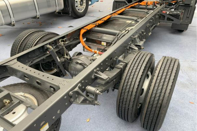 习惯了燃油车的卡友们普遍认为新能源车辆承载能力有限,事实上在先进制造加持和赋能下的新能源车辆承载能力同样超强。乘龙L2V产品采用高刚性耐冲击车架,轻量化结构,多片簧(3/6+7)悬架系统,高性能电驱桥,结合行业高端品牌7.00R16规格轮胎,强强联合,承载能力不输燃油车。