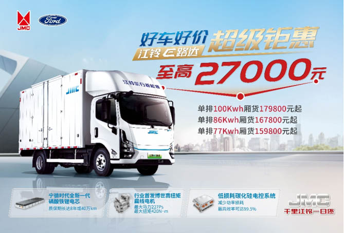 以好价,买好车;用车省,购车更省,江铃E路达还进一步推出超级钜惠活动,购车门槛大幅降低,惊喜一步到位!单排厢货15.98万起,至高优惠27000元!E路达纯电版以其超长的续航和强劲的动力等优秀品质获得了越来越多卡友的青睐。