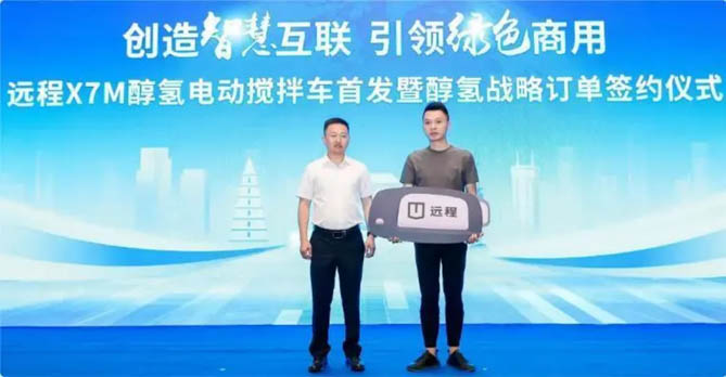 6月18日,“远程X7M醇氢电动搅拌车首发暨醇氢战略订单签约仪式”在西安成功举行,此次交付是远程醇氢电动搅拌车在西北市场的首秀,为用户带来了更加环保、高效、智能的醇氢电动运输解决方案,助力用户增效减排,打造绿色商砼运输新体验。