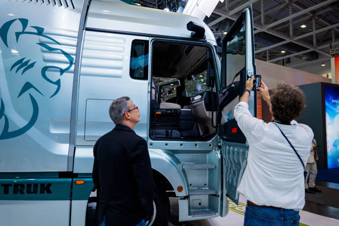 此次中国重汽展出的车型力作中,不乏全球商用车行业领先的亮点产品:全新升级的超低风阻黄河氢内燃机牵引列车、环保先锋HOWO统帅Pro纯电轻卡,以及重磅的汕德卡氢燃料电池牵引车。这些产品以其零碳排放、高效能的特性、前沿的科技驱动,展现了未来商用车绿色出行的无限可能,为物流运输行业树立了绿色标杆。这一系列产品在IAA上的璀璨亮相,不仅彰显了中国重汽在绿色、智能、高效转型道路上的坚定步伐,更向世界展示了一幅中国商用车行业迈向新辉煌的壮丽画卷。