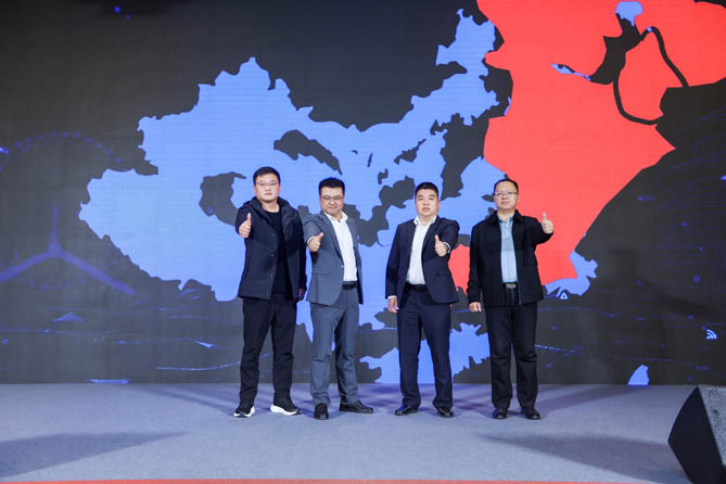 奇瑞零米营销公司服务总监王东、奇瑞零米轻卡事业部京津战区总监刘刚、奇瑞零米轻卡事业部晋冀战区总监彭毅、开瑞北部战区服务总监刘引刚启动“奇瑞零米 满载100度 畅行京津冀”活动