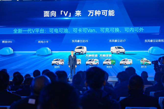 东风汽车股份总经理助理、商研总部总部长,暨全新一代V平台项目负责人浦倍雷介绍,该平台“可油可电,可卡可VAN,可充可换、可商可乘”,国内外商品同步开发,具备万种形态、万般改装属性。“秉承着为客户创造价值的理念,我们在开发阶段引入创新工具平台,实现集成化、模块化、系列化。全新一代V平台的大空间、高承载、长续航、高可靠、高可维护性特点突出,具备行业领先的结构、性能优势。”