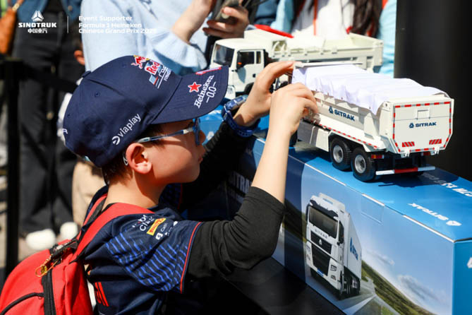 在F1中国大奖赛的"工业美学引力场",全球首发的SITRAK赛道版重卡无疑成为全场最耀眼的主角,它以“霸世钢躯,机械战魂”为设计理念,摇身化作“钢铁巨擘”,瞬间吸引了现场观众的目光。更令人动容的是,周末展区迎来了无数家庭和儿童,他们驻足于中国重汽展台——孩子们踮起脚尖触摸未来感车身,小小的身躯与大大的汕德卡打了个照面,借助今天这次温暖的邂逅,中国智造的种子也许就此种下,“小人儿”的心中,就此有了一个个大大的“中国重卡”梦想。