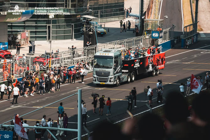 当F1赛车的轰鸣声响彻上海国际赛车场上空,中国重汽以一抹惊艳的 "中国红" 强势破圈。众多国际顶尖车手乘坐SITRAK巡礼赛道,让世界见证的不仅是中国智造的硬核力量,更是赛道基因与工业美学的完美融合,让卡车成为承载激情与创新的移动艺术。