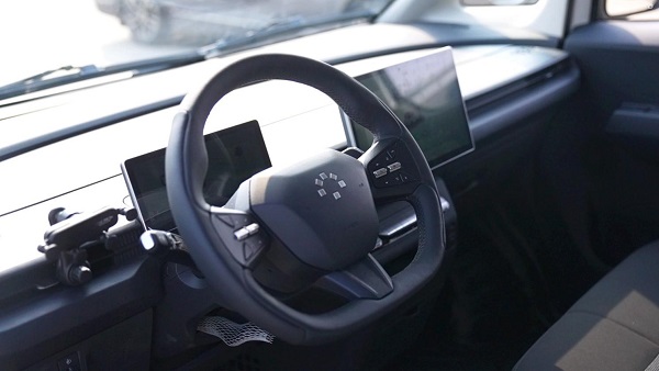 同时,乐福的智能座舱对各个年龄段的司机师傅都很友好,12.8寸的中控大屏可以接受语音指令,下面还有一排实体按键,让不熟悉智能系统的司机也能很快上手。方向盘的下切边造型让上下车更方便,拨杆式的怀挡大家都已经很熟悉了,它明显优于那些油改电车型的老式旋钮换挡机构。