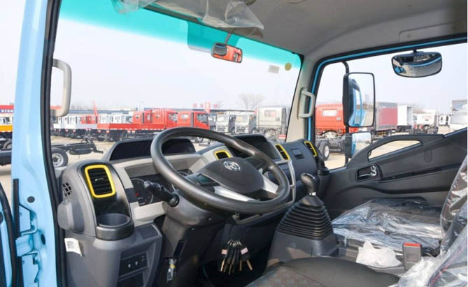 在驾驶体验方面,东风多利卡任吾行充分考虑用户需求,打造了舒适便捷的移动空间。驾驶室采用可翻转设计,便于日常维护检查,同时配备电动车窗中控锁,并可选装多功能方向盘,提升操控便利性。安全方面,车辆配备侧补盲镜和倒车雷达,有效消除视野盲区,1494mm宽后轮距则进一步增强了行驶稳定性,确保行车安全。