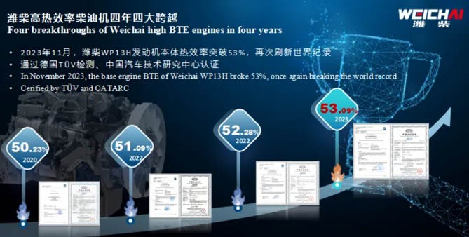 四破世界纪录 | 潍柴动力发布全球首款本体热效率53.09%柴油机