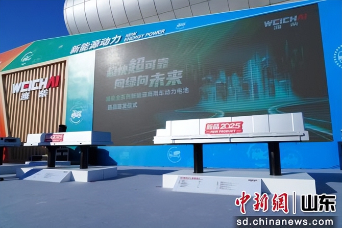 图为2025年全球合作伙伴大会,潍柴新能源电池展品。潍柴集团供图