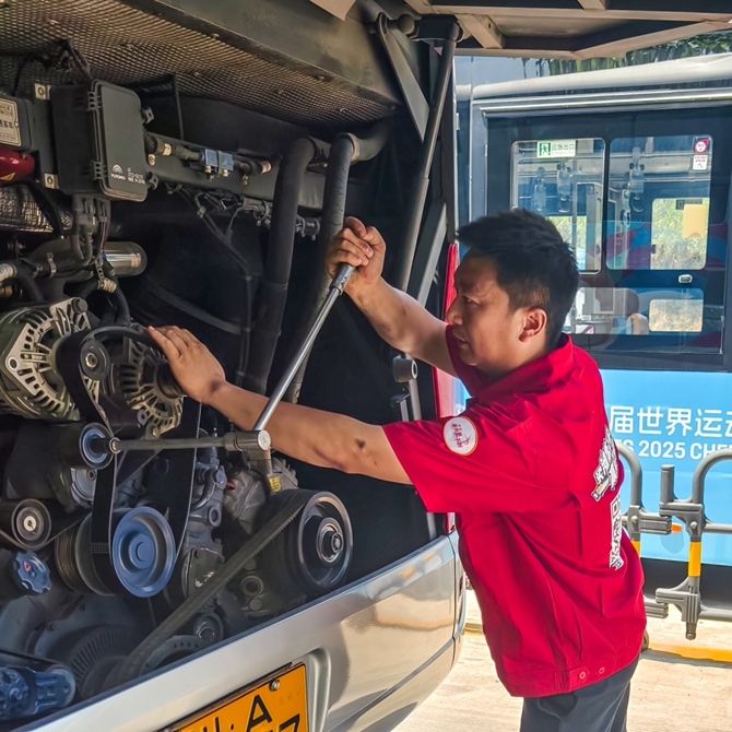 8月的成都,日气温最高一度超过40℃。在高温下完成跨场馆调度给保障工作带来了新的挑战。来自德阳市黑马汽车服务有限公司的周师傅说:“一看到搭载潍柴发动机的车辆平稳驶过赛场,就很自豪,即便工装被汗水浸透,也有一种满满的成就感!”