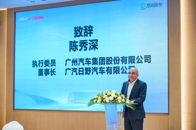 签约仪式上,双方领导出席并发表致辞。广汽集团执委、广汽日野董事长陈秀深表示,2023年广汽集团在产销增长、生态建设以及国际协同方面均取得了不俗的成绩,作为广汽集团旗下的商业车板块,广汽日野也紧跟时代步伐,积极响应国家对清洁能源的号召,主动实施新能源战略转型,推出一系列纯电动和氢燃料电池自卸车、搅拌车、厢式车等新能源重卡产品。在广汽日野转型过程中,得到了包括原尚股份、原锋新能源在内的合作伙伴和各界朋友的大力支持,未来双方将共同推进氢能技术的发展和应用,为绿色物流运输行业的低碳发展贡献力量。