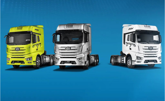 J7牵引车进口零部件率达到70%,采用BOSCH转向机、WACBO制动泵阀、电控空气处理单元、KNORR干燥罐、PKC线束,每月提高出勤率一天。