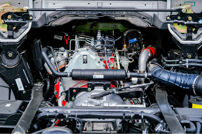 “发动机的缸盖采用了铝合金,轻量化效果非常明显;传动轴则采用了单根轴,单根薄壁,减少了中间的支撑,降低了重量;变速器使用了铸铝,整车支架的材料也做了升级,降低了重量;后桥方面轻量化体现在桥壳工艺上的提升,通过局部结构和冲压工艺优化,不仅实现局部降重8-9kg,后桥承载能力也提升了。另外,我们还增加了免维护的轴承,减少了维护成本。”