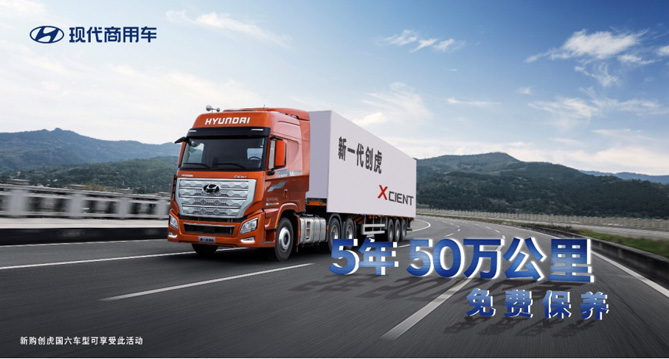 为了帮助客户实现降本增效,专注于业务发展,现代商用车在创新技术优化产品性能的同时,不断精益服务流程,持续赋能客户价值。作为解决用车全生命周期服务痛点的重要举措,现代商用车针对创虎国六新购车用户推出5年50万公里免费检查及保养,以帮助客户长时间保持车辆以最佳状态运营,让客户放心专注运营出勤,持续增加收益。不仅如此,由厂家提供的规范化、专业化服务,也可以帮助客户获得更长久、更稳定的产品品质,提升二手车保值率。
