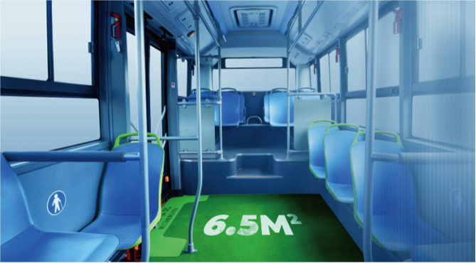 作为新一代宽体微巴,宇畅E7采用宽车身、低入口设计,既可实现一步登乘,又通过减少车内座椅区台阶,采用同级车型最宽中双门,提升了上下车的便利性和安全性。车辆低地板面积达6.5㎡,车身宽度达2350mm,超大地板和超宽车身使其座位数同级领先,载客量高达51人,可完全媲美8米级产品运力。
