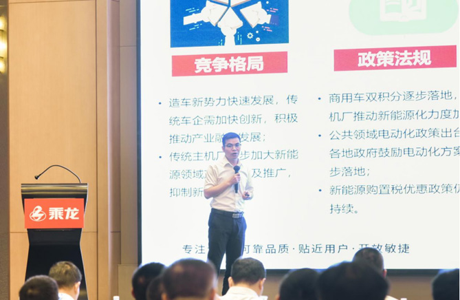 在国家“双碳”战略指引下,商用车新能源化渗透率逐年提升,成为行业市场新商机与新赛道。大会现场,乘龙开展“颠覆传统营销”的专项培训,从新能源商用车客户场景出发,为经销商赋能内容进行深入剖析。其中以租代售营销模式,可降低客户前期投入,解决新能源客户重资产、方案不灵活等痛点,为经销商进一步拓展营销空间。