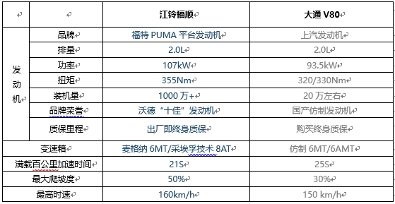 发动机:江铃福顺千万装机量,大通V80动力弱故障多