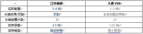 从上面的表格来看,江铃福顺的发动机和变速箱,各项数值都优于大通V80,能给用户带来更好的使用效果。市场上都在说,三年的大通一堆铁,除了喇叭不响其他地方都响。