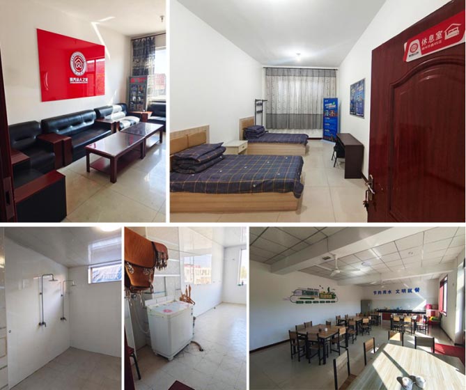 兰州民先服务站、永昌新星服务站分别位于甘肃省兰州市安宁区九和镇西部车城和甘肃省金昌市永昌县东区,是全国主要货运通道和货运枢纽的重点区域,来往卡友繁多,服务需求多样,服务站经过组织形象建设与软硬件服务升级后,规划并建设了一系列区域,为卡友提供一系列免费贴心服务。