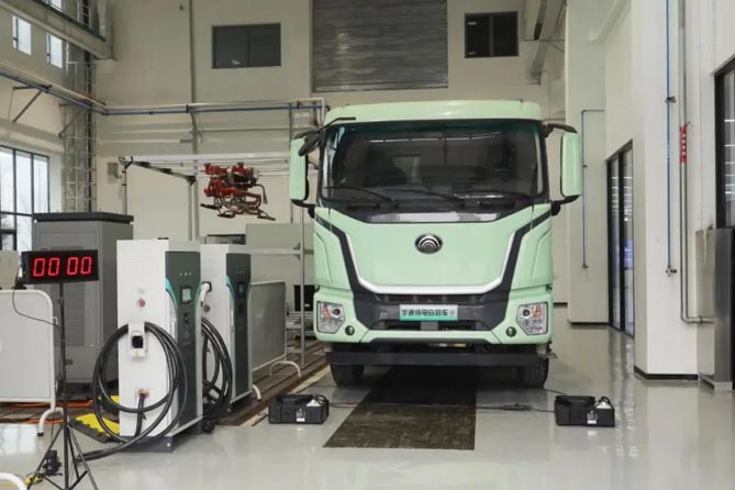 目前,宇通通过自制电池系统双通道充电技术开发,已实现1辆车可使用2台充电桩进行充电,在充电桩资源满足的情况下,使用2台充电桩进行同时充电,充电功率可提升1倍。