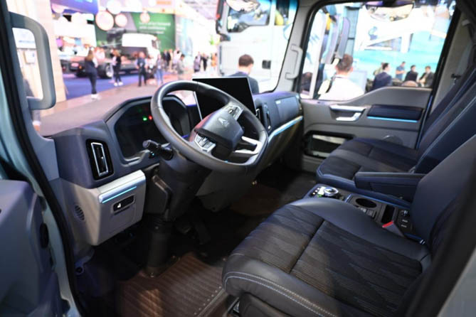 在舒适性方面,统帅Pro纯电动轻卡同样表现出色。全新开发的新能源平台轻卡驾驶室采用贯通式布局,座舱空间显著提升。驾驶室内配备了12.3寸全液晶仪表、智能影音系统、多功能方向盘、自动恒温空调、空气弹簧减震座椅等一系列豪华配置,支持OTA远程升级和车辆远程诊断功能,让用户在享受科技带来的便捷与舒适的同时,也能随时掌握车辆状态,确保行车无忧。