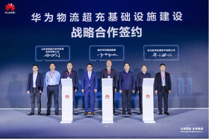 发布会现场签约华为物流超充基础设施建设、华为山东物流大数据应用中心建设、华为城市超充基础设施建设等多项战略合作。本次活动邀请行业专家及企业伙伴广泛参与,共同探讨推进物流电动化、数字化、降本增效、绿电交通的新思路、新技术、新措施。通过优化线路规划布局、提升运输承载效率、加大清洁能源占比等有效手段,推动新能源商用车等优势产业集群促进高质量充电基础设施网络协同升级,让交通运输领域能源转型支撑减碳成效向好达成。