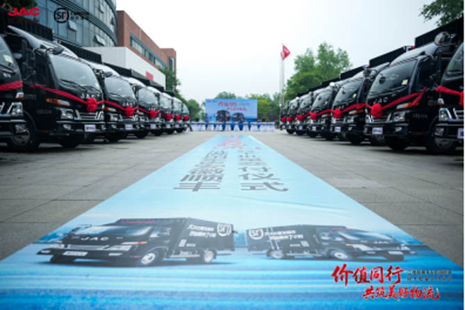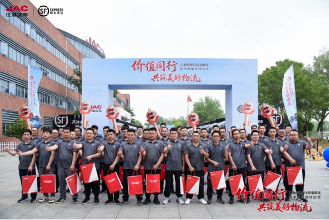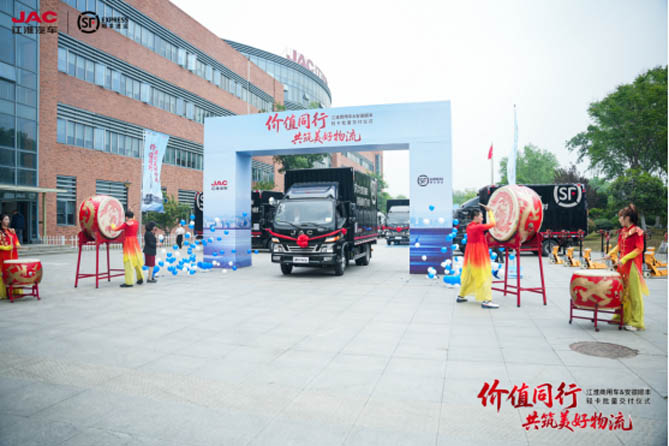 4月22日,“价值同行 共筑美好物流”江淮商用车&安徽顺丰批量轻卡交付仪式在合肥举行。近百辆江淮1卡骏铃V5正式交付安徽顺丰,标志着双方强强联合,迈向全价值链深度协同。