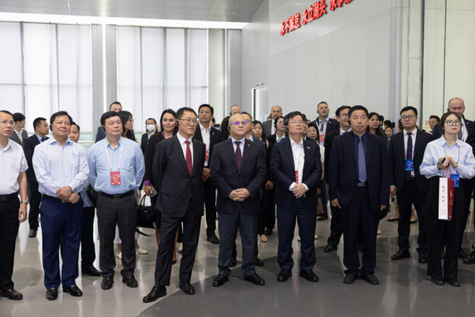 (来自德国、匈牙利、马来西亚等国家的百人友城团走进山东重工)