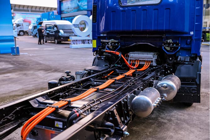 看到这里,相信很多卡友已经发现了,这款帅铃ES6和市场上常见的将电池包侧挂于车架上的新能源轻卡似乎有些不同。没错,帅铃ES6采用的是正向开发的纯电平台,动力系统的布置可以不受燃油轻卡的发动机、变速箱、传动轴的影响,完全按照纯电轻卡的用车需求进行设计,如搭载行业领先的平行轴电驱桥,能够更加贴合运输场景,专业度也更高。