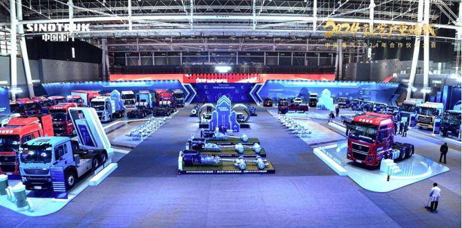 2024年1月5-7日,中国重汽2024年合作伙伴大会盛大举办,中国重汽S+技术品牌正式发布,78款整车及50件零部件产品震撼亮相,其中包括高效干线物流巅峰之作—汕德卡CH9/840马力牵引车、搭载S-IEC燃气智控技术的全新豪沃TS7-H/700马力燃气车、轻卡巅峰之作—HOWO轻卡8AT两款全新产品、黄河X7 L2+级智能驾驶牵引车及汕德卡GX氢燃料重卡,以科技赋能商用车绿色、智慧、高效升级。