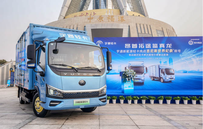 【宇通新能源轻卡获得“电动厢式轻卡单次满电行驶最远距离”的吉尼斯世界纪录称号】