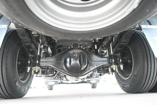 此外,这款车采用大扭矩容量后桥,配合4.33/4.875可选速比,车辆在面对复杂多变的道路环境时会尤为从容。无论是湿滑路面还是崎岖山路,大扭矩后桥都能确保车辆具备足够的牵引力和稳定性,减少打滑和失控的风险,保障货物安全送达。这种设计不仅提升了车辆的通过性,也增强了用户在不同运输场景下的信心。