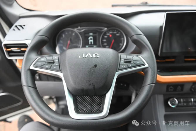这款车方向盘采用“D”型多功能设计,方向盘集中了定速巡航、接打电话、控制液晶显示屏等多种功能,操作非常的简单方便。“D”字型的设计更符合人体工学,让很多有着“大肚腩”的卡车司机,不再受到方向盘的挤压,而且在发生碰撞时,减轻方向盘挤压带来的伤害。