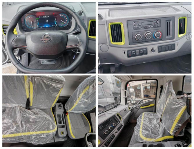 进入驾驶室,方向盘带EPS转向助力,低矮仪表台,让前方视野更宽阔。其还采用大功率扁线电机,功率大,动力强。可选机械减震座椅,配置旋钮式换挡器,自动大灯,一键启动,可选自动调节电加热后视镜,让司机轻松开启一段新旅程,起停转合,舒适无压力。主副驾直通式通道,宽度200mm,出入自如。手刹放平,司机可平躺在主副驾座椅上,妥妥一张睡床。