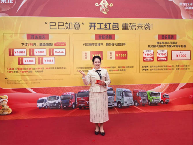 伴随着象征好运与财富的财神降临,东风柳汽商用车销售公司副总经理谭晓蕾发布了2025“巳巳如意”开工礼包,一系列重磅福利,瞬间点燃了卡友们的热情,掀起抢订热潮。