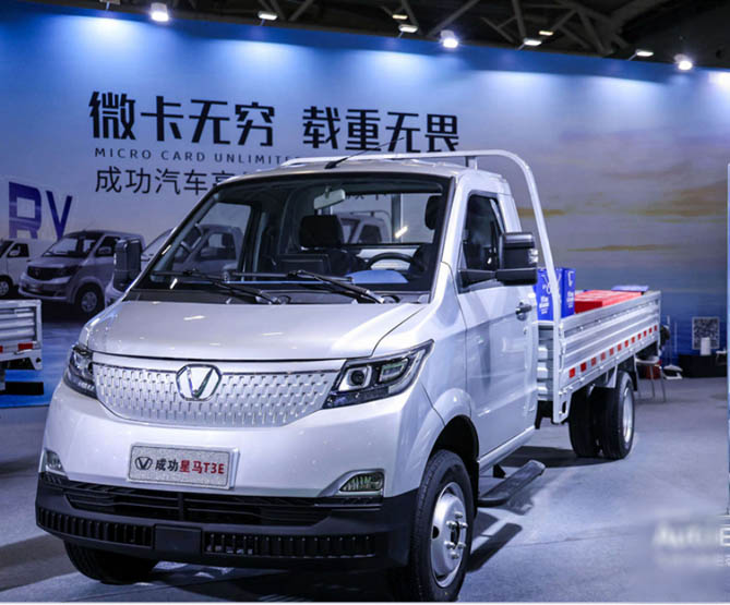 成功汽车展示了2025款高品质载重微卡斑马系列、超能芯动力微卡角马系列等车型,其中包括成功星马T3E。