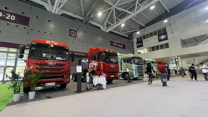 比如,一汽解放带来的是鹰途牵引车、悍V2.0牵引车、JH6牵引车、J6L港牵引车、J6L300马力大单桥载货车等,是专注于长途运输、港口运输的拳头产品,体现了该品牌在上述产品上的充分布局。