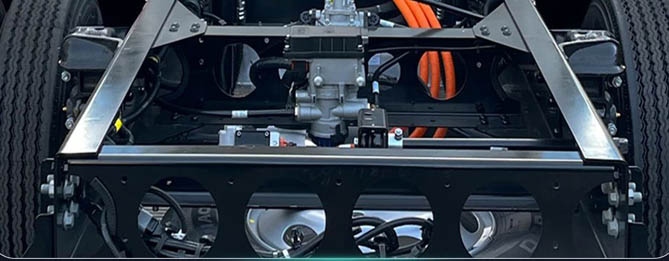该车采用CTP电池中置一体化平台,使底盘离地间隙高达380mm,防止坑洼路段带来碰撞,特别适应山区运营场景。