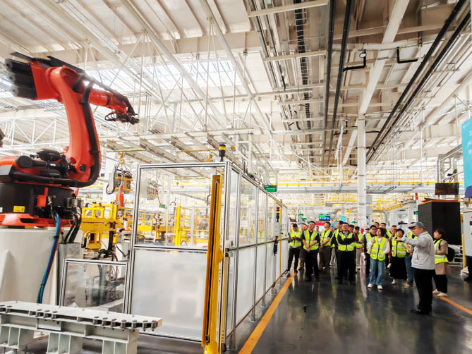 工作人员介绍,工厂不断升级改造新产线,投产以来应用信息化、数字化、智能化技术,自动化、智能化水平不断提高,生产效率大幅提升,现在每辆车下线时间可缩短至4分钟。