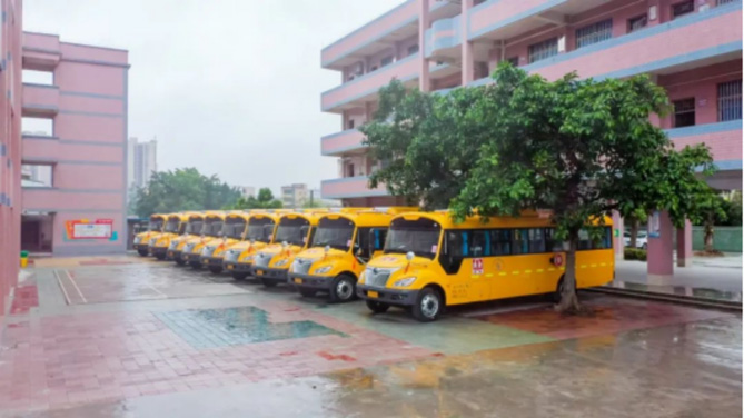 守护孩子上学路!宇通校车批量投运江门开平市,为开平市24所学校的3700多名学生的上下学路保驾护航。