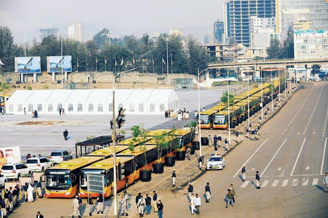 埃塞俄比亚首都亚的斯亚贝巴市街头的宇通公交车