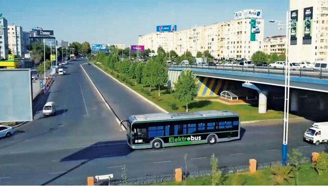 乌兹别克斯坦首都塔什干运营的宇通纯电动公交车