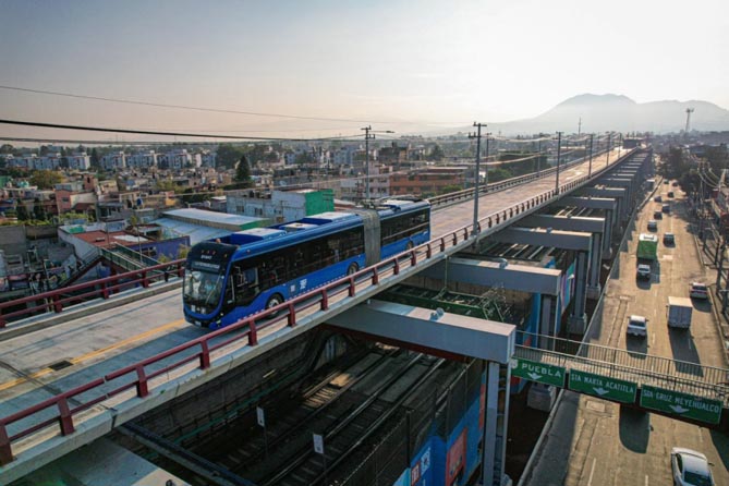 行驶在墨西哥的宇通18米双源无轨电车