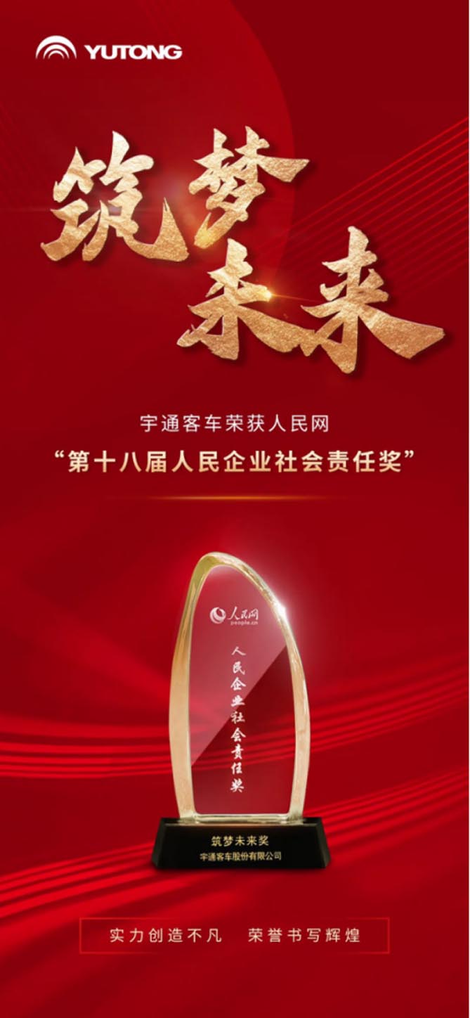 12月21日,由人民日报社指导、人民网主办的2023人民企业社会责任荣誉盛典暨第18届人民企业社会责任奖颁奖活动在京举行。宇通客车凭借着社会责任践行成果以及在儿童交通安全领域的突出实践荣膺“第十八届人民企业社会责任奖——筑梦未来奖”,成为客车领域率先获此殊荣的企业。