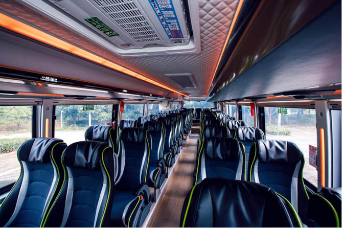 亚星金刚13.7米是目前国内12米以上特大型座位客车中最长、最高的车,整车长度为13680mm,车辆高度为3860mm。基于超大尺寸,因而无论是2+2、2+1、1+1座椅布置还是平躺代卧座椅设计,在同座位数的情况下,金刚总能保证座间距比同类产品大个码,对大高个和中长途旅客来说,就更能体验到旅途的舒适惬意。