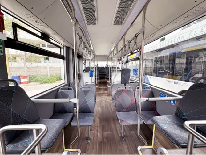 同时,为了提升乘客舒适性,宇通充分结合当地气候条件、运营环境及用户习惯,对座椅排布、驾驶舱布局及空调制冷系统等诸多细节进行定制化开发与优化。基于欧洲驾驶员体型特征与操作习惯适配电动旋转驾驶座椅,宇通将司机进出通道宽度加大5%,操作便捷性明显提升;为应对雅典夏季高温高湿环境,车辆全面搭载宇通电动冷暖空调及新风系统,制冷量较同系产品提升23%,让市民、游客在穿行古城窄巷时既能感受千年文明脉动,亦能享受现代科技的舒享关怀。