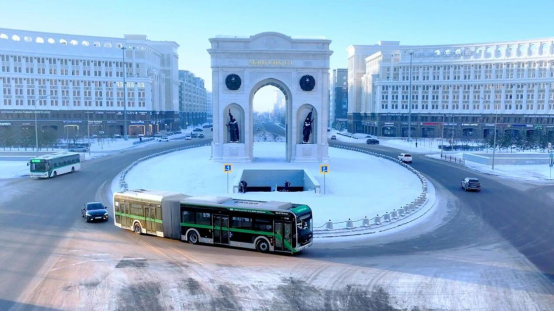 哈萨克斯坦作为中亚地区公共交通绿色转型的“排头兵”,多年来为构建可持续发展未来高度重视绿色经济发展,积极寻求绿色发展之路,加速推进绿色公共交通体系建设。在哈萨克斯坦,宇通不仅是首批纯电动公交的引入者,还实现了双源无轨电车保有量超200辆、市场占有率100%的佳绩,助力哈萨克斯坦加速迈向绿色公共交通时代。2023年,宇通在哈萨克斯坦首都阿斯塔纳交付的224辆宇通客车中,涵盖20辆18米纯电动客车,进一步缓解了首都高峰出行压力,提升了城市运力。
