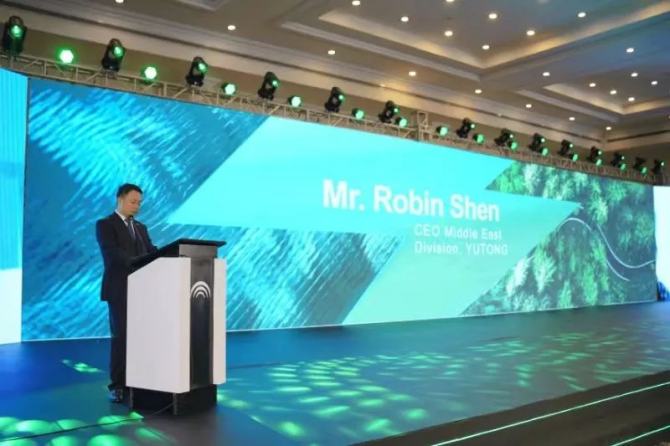宇通巴基斯坦公司总经理Paul Zhang重点介绍了公司创新研发的DMT和YEA核心技术,并针对巴基斯坦当地气候环境和实际路况特点,推出了四款新能源主力车型——H9、H12、E9及E12PRO公交产品。