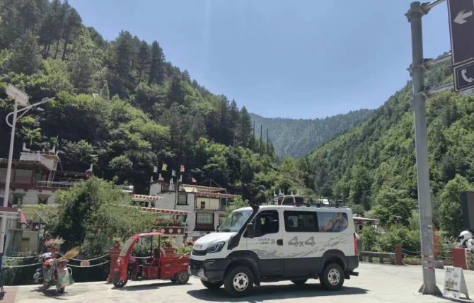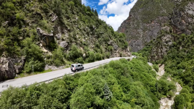 川西的路,很多都是两山加一沟,路窄弯多,停车困难。欧霸·山海的过弯性能很不错,正常行驶不会有太大的侧倾感。