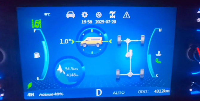 来看一下水温升高问题。这是我们在过雀儿山隧道时拍的,海拔4,148米,水温完全正常。
